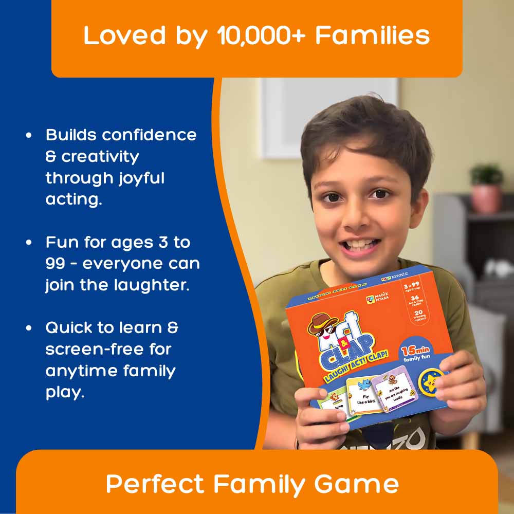 It brings together Buzz It (the fast word game) and Act & Clap (the joyful acting game). Both are easy to learn, replay again and again, and perfect for kids and adults alike.